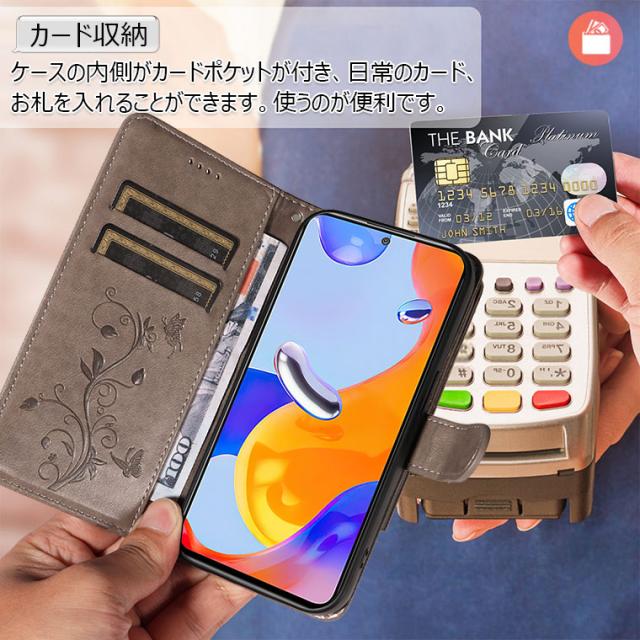 ●財布型ケースとして、名刺やお札などを入れるカードポケットがつき、日常生活に便利です。