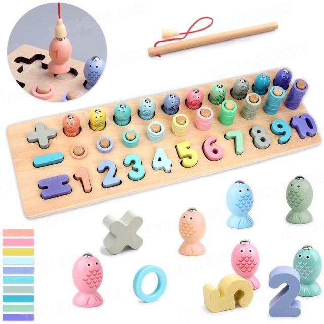 釣りおもちゃ 魚釣りおもちゃ 知育玩具 モンテッソーリ 教具 釣り玩具 おもちゃ 学習玩具 積み木 釣り 数字 ゲーム 木製パズル 型はめ 想像力/創造力 形認識力 集中力 数学力アップ 幼児 脳 活性化 感覚教具 指先訓練 誕生日プレゼント 出産祝い