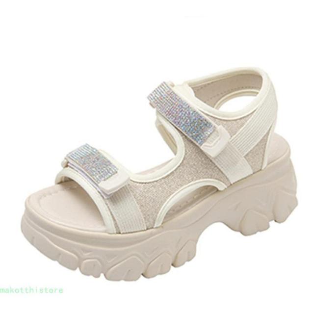 厚底 スポーツサンダル ベルクロ グリッター 韓国 スポサン 夏用 ビーサン レディース ビーチサンダル ミドルヒール ラウンドトゥ 太ヒール ピカピカ 川遊び 通