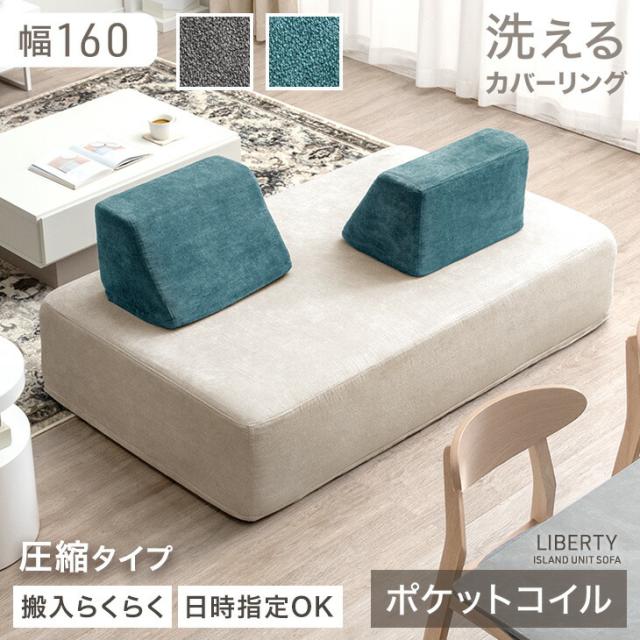 【正午〜P5%還元】 アイランドソファ 洗える カバーリング ポケットコイル 幅160 ユニットソファ アイランド ソファ アイランドソファー ソファー カバー sofa 背もたれクッション 2人掛け 3人掛け 北欧 おしゃれ