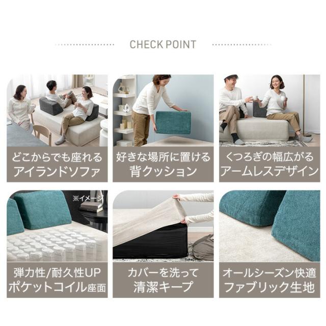 カバーリング アイランドソファ ポケットコイル 背もたれクッション 洗える カバー アイランド ソファ カバーリングソファ ユニットソファー 背もたれ sofa 2人 3人 北欧 おしゃれ