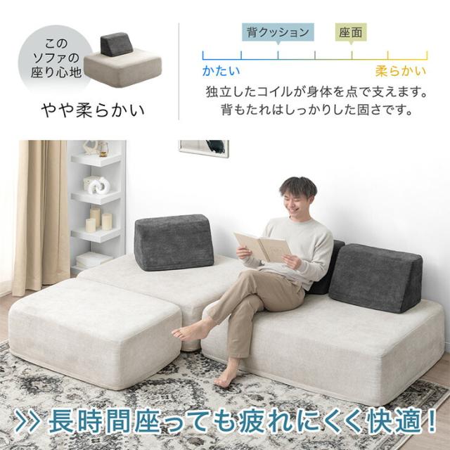 【正午〜P5%還元】 アイランドソファ 洗える カバーリング ポケットコイル ユニットソファ カウチソファ アイランド ソファ アイランドソファー ソファー カバー 背もたれ オットマン付き 3人掛け L字 おしゃれ