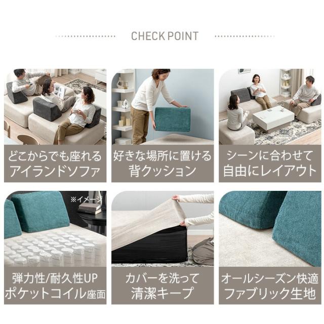 カバーリング アイランドソファ ポケットコイル 背もたれクッション 洗える カバー アイランド ソファ カバーリングソファ ユニットソファー カウチソファー sofa L字 3人 北欧 おしゃれ