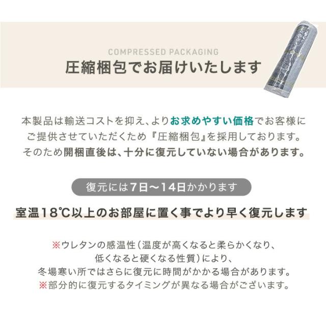 ※本商品は圧縮梱包でお届けいたします。通常開封から1?2日で復元しますが、気温や室温によっては3?14日程かかる場合もございます。
