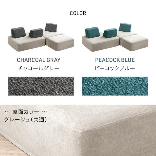 背もたれ:チャコールグレー、ピーコックブルー