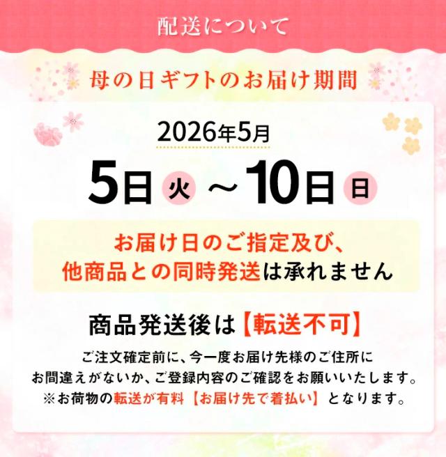 5月5日(火)〜5月10日(日)の間のいずれかのお日にちにお届け致します。