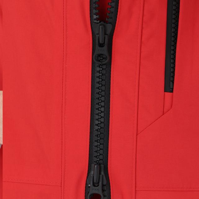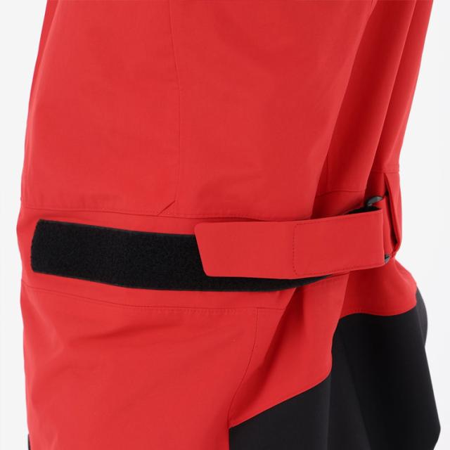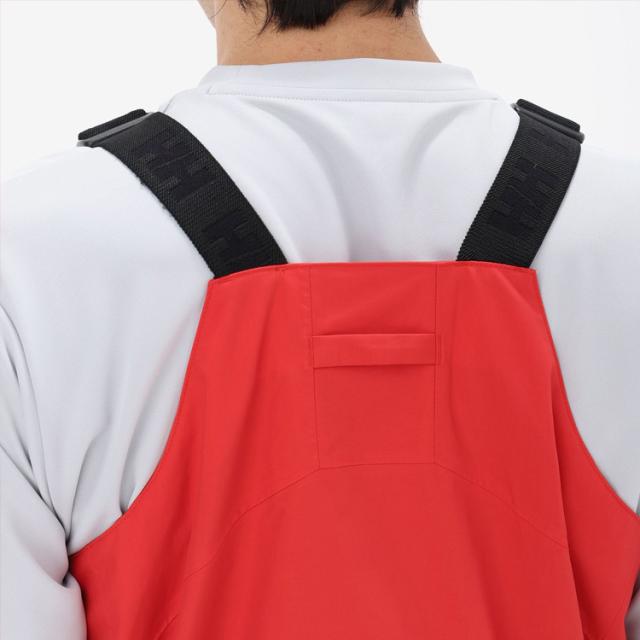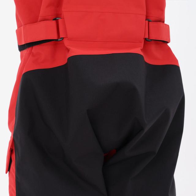 | 特徴 | 防水透湿性のある2層構造の生地の素材は、リサイクルナイロン(リサイクル原料率53%)を使用した環境配慮型素材。防水コーティングは、疎水性のあるポリカードネート配合コーティングを使用しています。 肌側はドライライナーとメッシュの、肌離れがよい仕様。セーリングシーンで擦れやすいひざ部分とヒップ部分は、コーデュラで補強しました。 ややゆとりのある、寒い時期にインナーのレイヤリングがしやすいシルエット。ウエストは、締め込みがしやすいアジャスト仕様で、シーナイフケースが通せるタブにしています。 左胸には、止水ビスロンファスナー付きポケットを配置。 耐水性:20,000mm |