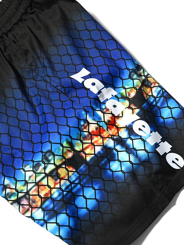 LFYT x reversal NYC FIGHT SHORTS BASIC LENGTH with POCKET エルエフワイティー リバーサル NYC ファイトショーツ ベーシックレングス ポケット付き 【REVERSAL DOGI DESIGN WORKS(リバーサルドーギデザインワークス)】 格闘技をベースとしてますが、ファッションとスポーツをクロスオーバーさせたアパレルブランド。 格闘家だけならず、あらゆるオシャレ好きから支持されている。 reversal.dogi.design.works(リバーサル・ドーギ・デザイン・ワークス)25周年を記念した「LFYT」×「rvddw」によるコラボレーションコレクション。 オクタゴンをイメージさせる金網とニューヨークの街並みを大胆に落とし込んだインパクトのある1本。 サイドにはLafayetteロゴ、reversalロゴをそれぞれプリント。 普段使いにも嬉しいポケット有りのファイトショーツ。 足の可動域を高めるスリット、ストレッチ素材、180度開脚パターン、ゴムウエストなど高い機能でパフォーマンス、ワークアウトをサポート。 ジムワークやトレーニングにはもちろん、夏はスイムウェアとしても使用可能。 | ||||||||||||||||||||