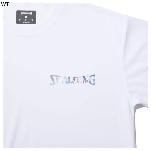 スポルディング メンズ レディース Tシャツ ホログラム ワードマーク バスケットボールウェア トップス 半袖Tシャツ ホワイト 白 ブラック 黒 送料無料 SPALDING SMT25017