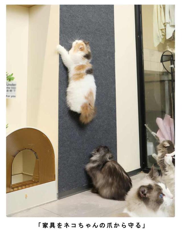 | 「家具をネコちゃんの爪から守る」 サイズ豊富、どこでも貼り付ける爪とぎ! 取り付け簡単、高さ自由にカット 丈夫な素材で、爪の引っ掛かりが良いのでストレス解消にびったり! 設置するお部屋の状況や、ネコちゃんの好みの爪とぎ姿勢に合わせた取り付けが可能です。 | |