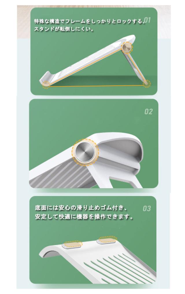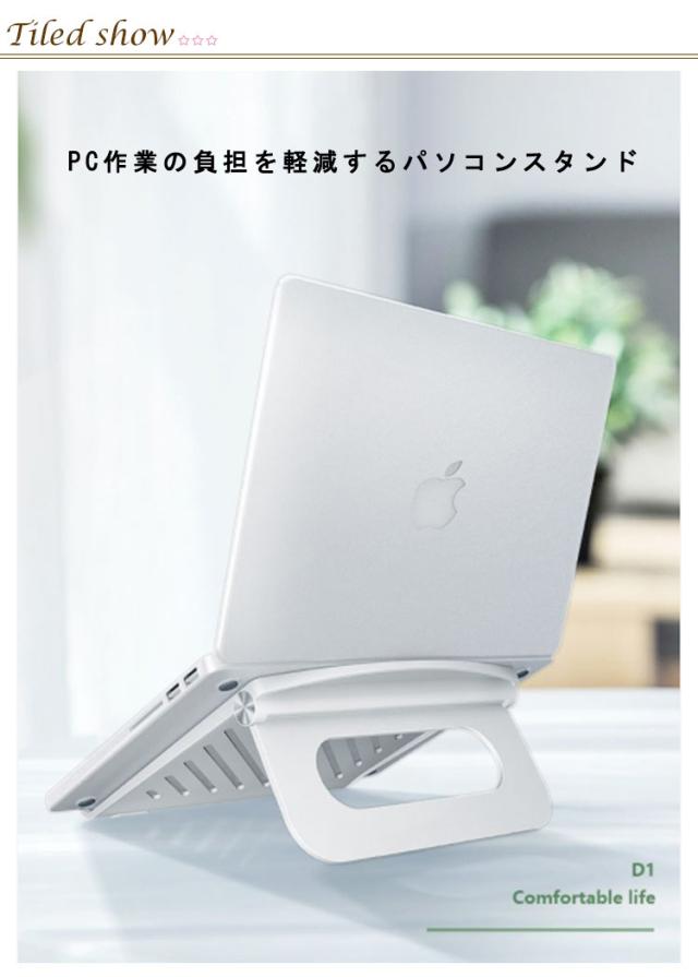 | PC作業の負担を軽減するパソコンスタンド 角度・高さ調整ができるので自分の好みの位置を見つけるのができます。 正しい姿勢でPC作業の負担を軽減!手首に負担をかけず、キーボード入力も快適です。 特殊な構造でフレームをしっかりとロックする、スタンドが転倒しにくい。 スタンドを使えばパソコンの底面を机から離すことができるので、排熱がスムーズになり、パフォーマンスをより高めることが可能です。 底面には安心の滑り止めゴム付き、安定して快適に機器を操作できます。 | |