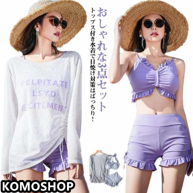 水着 フィットネス 体型カバー 3点セット 露出控えめ ビキニ レディース セパレート タンキニ おしゃれ 中学生 高校生 女の子 3点セット セットアップ かわいい スポーツ 修学旅行 韓国風 高校生 大学生 UVカート
