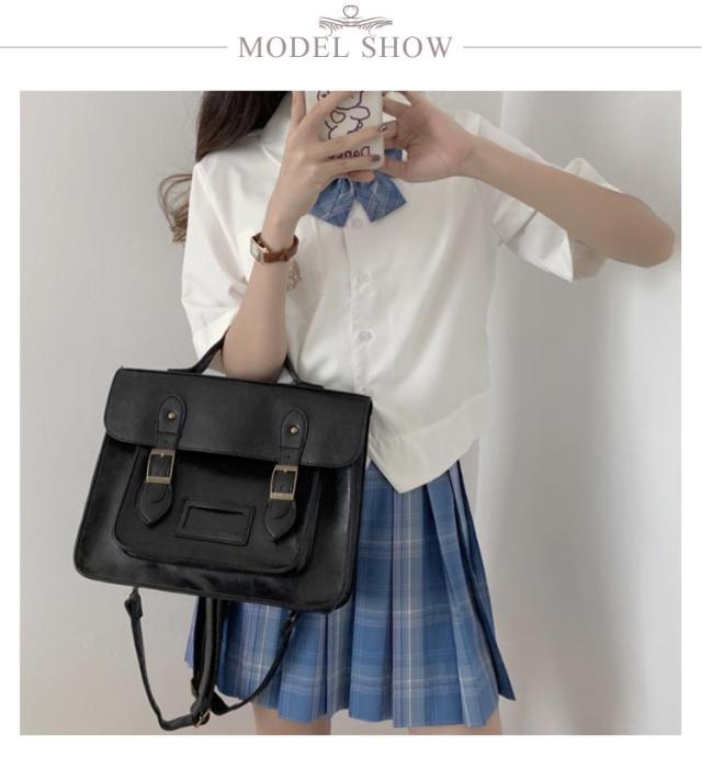 | 学生鞄をイメージしたサッチェル バックです。 ハンドバッグ、ショルダーバッグ、リュックと3way仕様です!! フォーマルにもカジュアルにもどんなファッションスタイルにもマッチするため、オン&オフ兼用のデイリーバッグとして活用度は抜群 A4サイズの書類や13インチのノートPCが収納可能なので、お仕事や通学にも使っていただけます | |