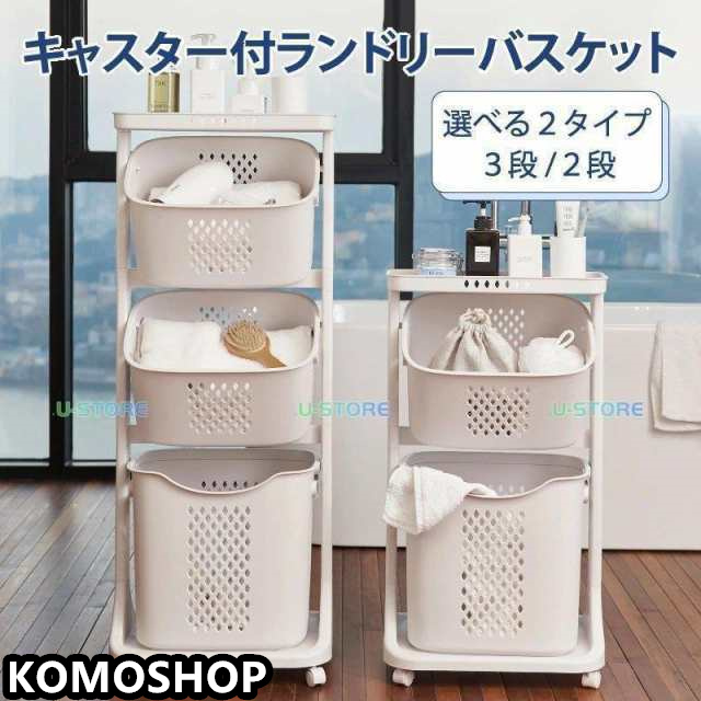 ランドリーバスケット 2段 3段 ランドリー バスケット カゴ ランドリーラック キャスター付き 洗濯かご 洗濯