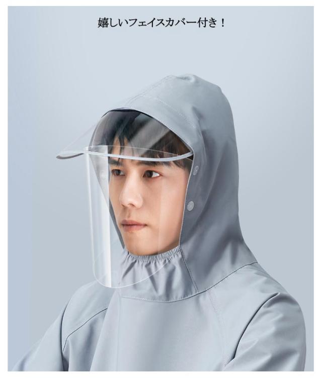 | 撥水性抜群な濡れないロングユニセックスレインコート 通気設計を使用し、真夏や梅雨などの長時間着用にもベタつきなし! 嬉しいフェイスカバー付き! フードにはサイズを調節可能な仕様 便利な手カバー付き 夜間外出にも反射ラインがつき | |