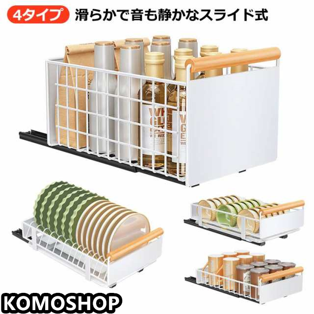 | 4タイプ 滑らかで音も静かなスライド式 出し入れしやすいスライド式 横から中身が見やすい ケガしにくい安全加工 | |