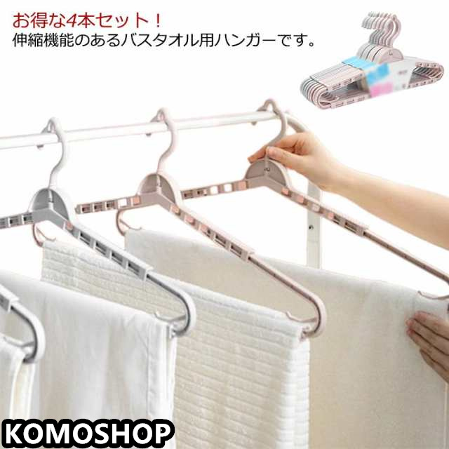 バスタオルハンガー 4本組 風通し 伸縮式 フェイスタオル 乾きにくい 洗濯ハンガー タオル干し タオル掛け 物干しハンガー ベランダ おしゃれ 洗濯用品 室内干し 部屋干し 家庭用 跡がつかない 送料無料