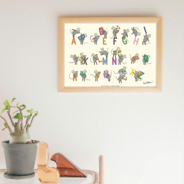 ERIC CARLE:エリック カール・B4サイズ ポスター『Alphabe / はらぺこあおむし』木製フレームセット|インテリア 北欧 ナチュラル ブラウン 額装 エリックカール