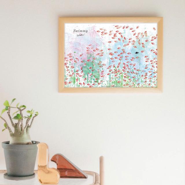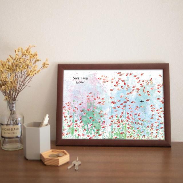 LEO LIONNI レオ・レオニ B4サイズ・ポスター『Swimmy』木製フレームセット|インテリア 北欧 ナチュラル ブラウン 額装 レオレオニ
