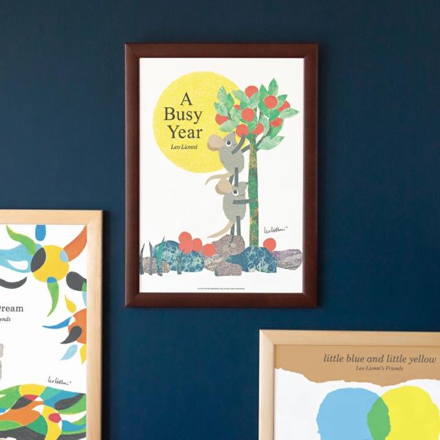 LEO LIONNI レオ・レオニ B4サイズ・ポスター『A Busy Year』木製フレームセット|インテリア 北欧 ナチュラル ブラウン 額装 レオレオニ