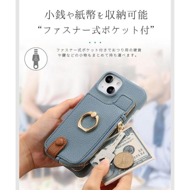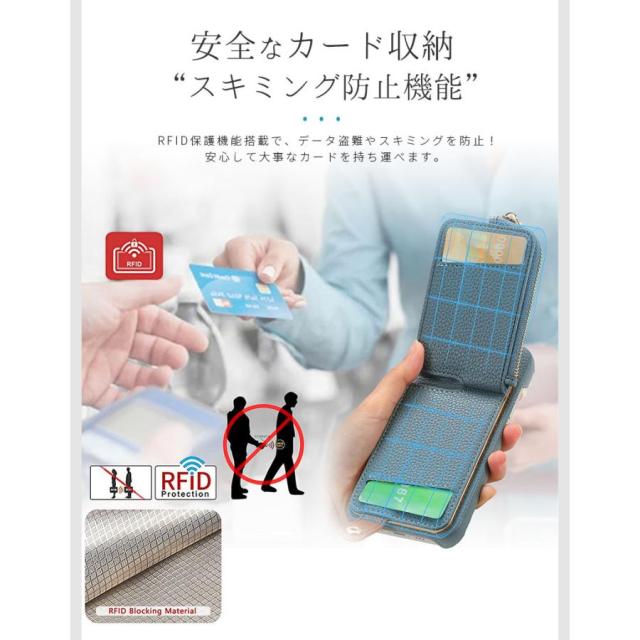 ・ファスナーポケット付き ファスナー式ポケットでおつり用の硬貨や鍵などの小物もまとめて持ち運べます。