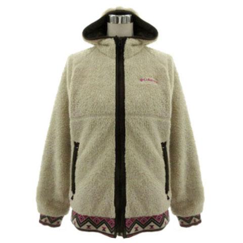 【中古】コロンビア Columbia フーデッドボアフリースジャケット PL3979 ロゴ刺繍 ジップアップ ベージュ 茶系 L