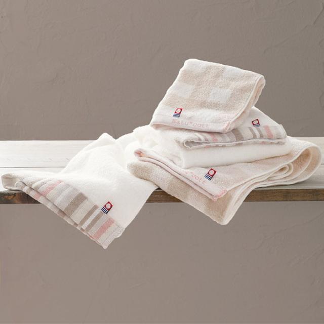 糸を撚る回数を通常より少なくすることで優しいふっくらとした風合いに仕上がっています。また、環境と人に優しい化学薬品を使わない方法で精練漂白をしています。