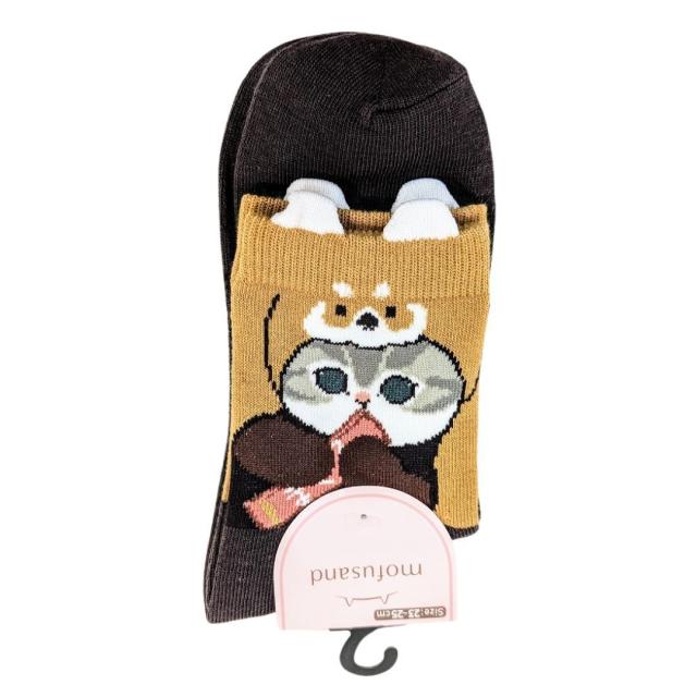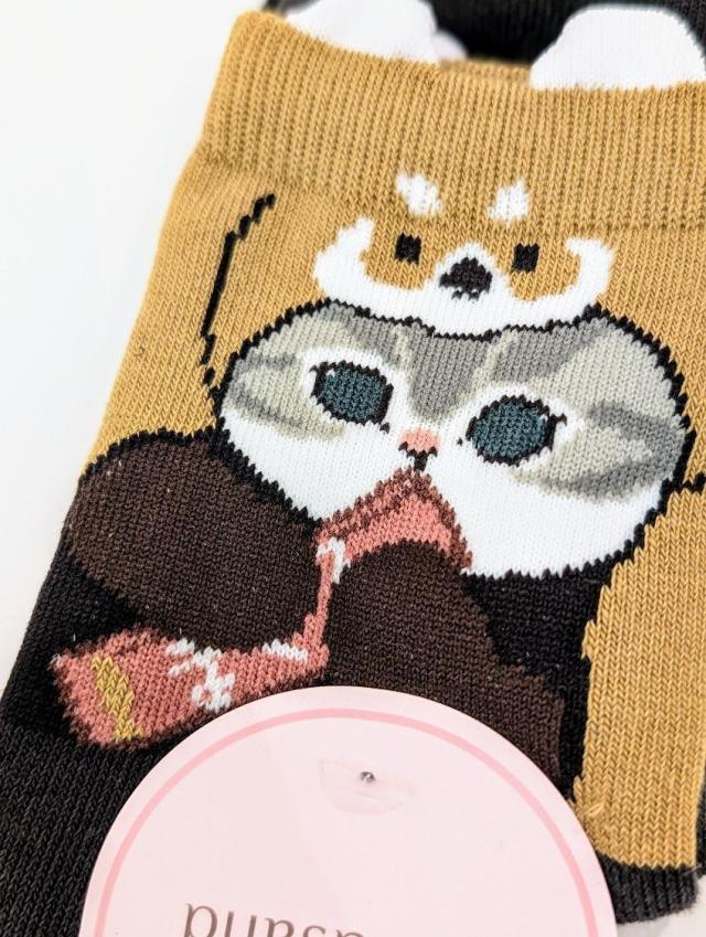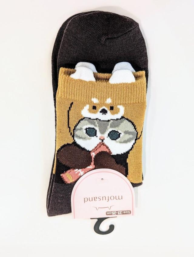 モフサンド クルー丈 靴下 突起付きアライグマ ソックス クマにゃん ネコ 約23cm~25cm