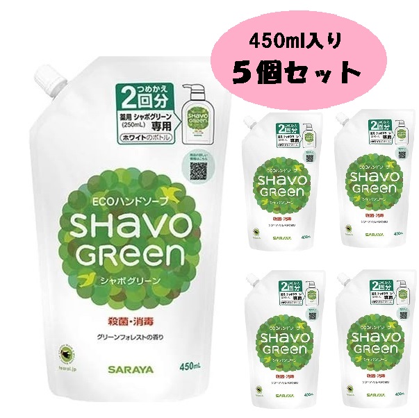 サラヤ シャボグリーン 薬用ハンドソープ 詰め替え 450ml 5個