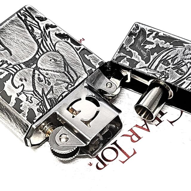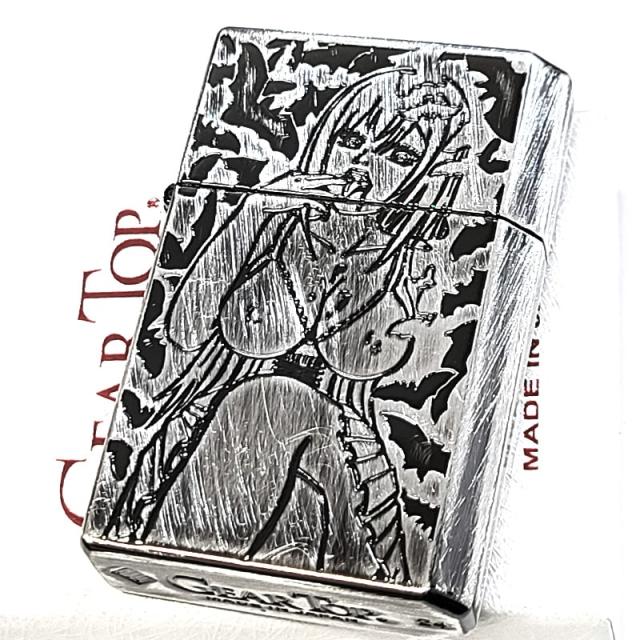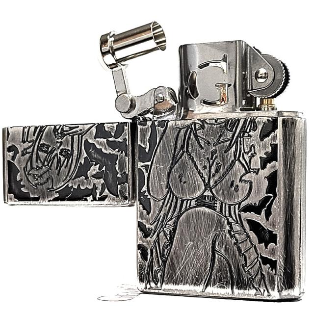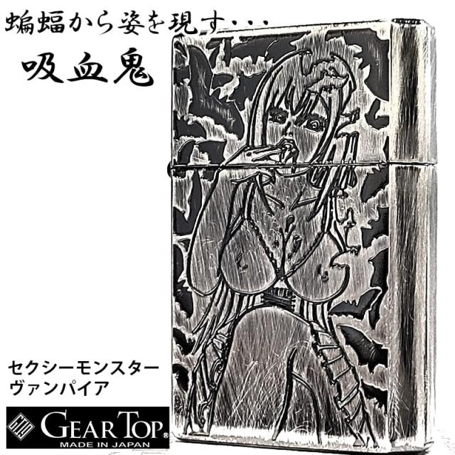 ギアトップ オイルライター 日本製 セクシーモンスター ヴァンパイア 吸血鬼 GEAR TOP アンティークシルバー 彫刻 ユーズド加工