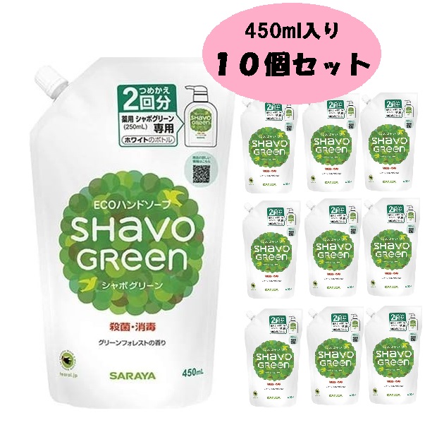 サラヤ シャボグリーン 薬用ハンドソープ 詰め替え 450ml 10個