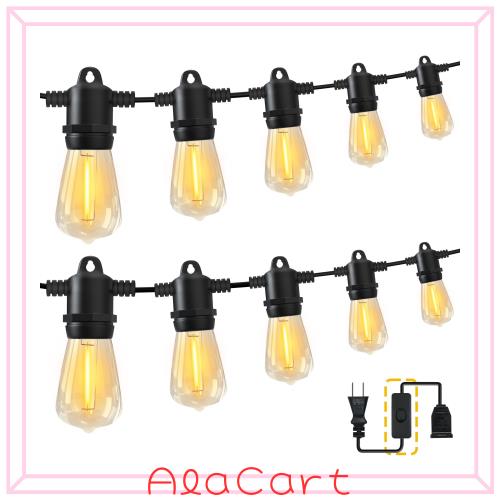 Benature LEDストリングライト 屋外 防雨型 電球色 延長コード スイッチ付き 14.8m 16個電球 PC素材 破損しにくい E12ソケット 連結可能