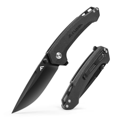 FLISSA フォールディングナイフ 折りたたみナイフ アウトドアナイフ D2鋼ブレード G10ハンドル ポケットナイフ 登山 キャンプ トレッキング 釣り 家庭用 DIY用 防災用 全長約19.8cmブラック