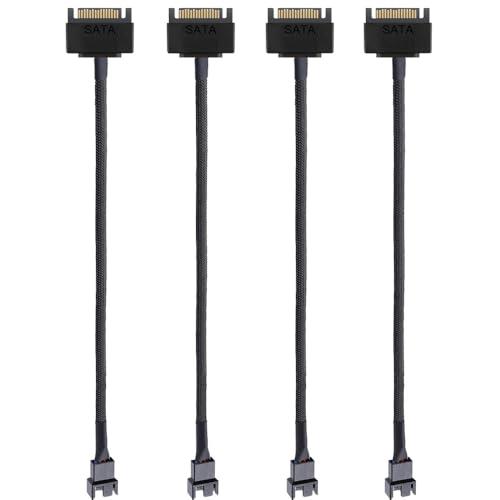 Kiligen 4個 SATA から 3 ピン / 4 ピン PMW 12V PC ケースファン電源アダプタケーブル、3 ピンまたは 4 ピン (PWM コネクタ) から 15 ピン SATA コンピュータクーラー冷却ファン電源ケーブル