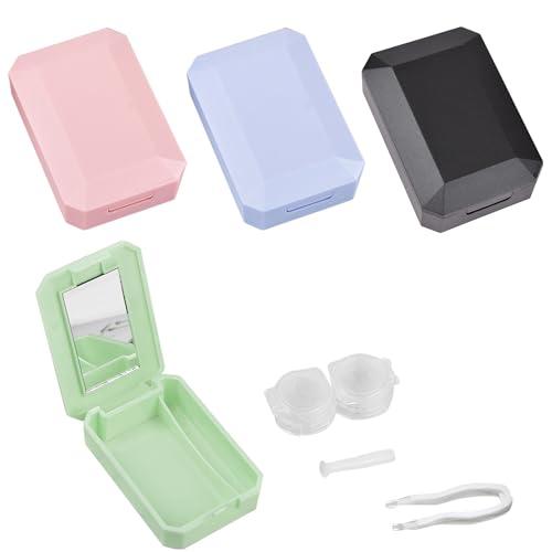 コンタクトケース ハード4個セットコンタクトレンズケース 鏡付き コンタクトレンズケースセット コンタクト収納ケース ハードレンズ 漏れ防止 コンタクトケースケース 外出 旅行 出張 携帯便利 ブラック、ブルー、グリーン、ピンク