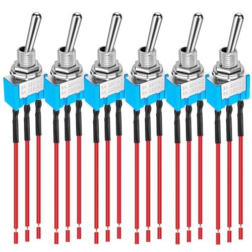 Kiligen 6 個パック 配線済み MTS-103 ブルー ミニ トグル スイッチ 125VAC 6A、3 ピン 3 ポジション ON/OFF/ON オン/オフ/オン スイッチ 自動車用 船舶用 トグルスイッチ