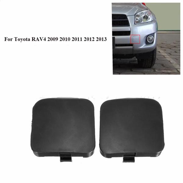Toyotarav4用の黒いプラスチック製の牽引フックカバー、左右のフロントバンパー、牽引フック、アイキャップ、1ペア、2009、2010、2011、2012、2013