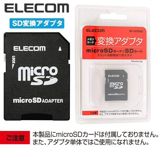 ●microSDをSDに変換するアダプター。携帯電話等で使われているmicroSDをSDとして使えます。