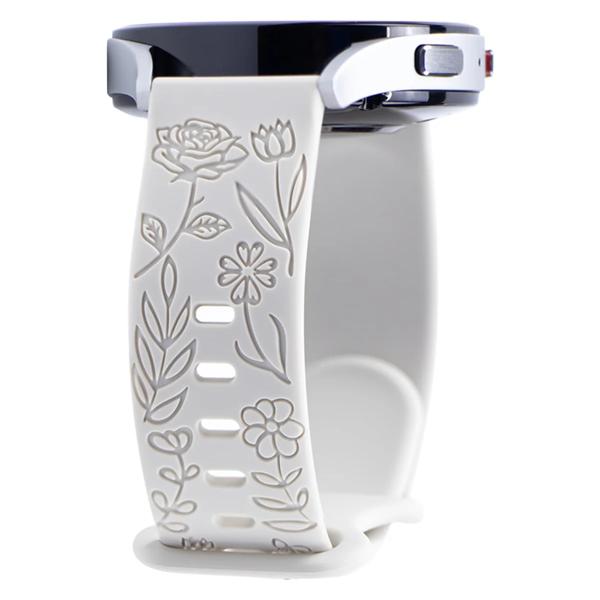 サムスンギャラクシーウォッチ用の花柄の刻印バンド,シリコンスポーツストラップ,サムスンギャラクシーウォッチ6, 5, 4,huawei gt 3 pro,シリコンストラップ,18, 20, 22mm, 40mm 44mm、45mm、active2