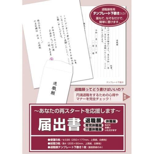 「退職願」「育児休職届」「介護休暇届」「休職届」などに「退職願」「育児休職届」「介護休職届」「休職届」などにお使いいただけます。◆材質:上質紙◆セット内容:便箋5枚、封筒3枚、退職願専用テンプレート下敷き1枚。本体色・柄:。本体重量:70g。サイズ:本体 約 縦3×横185×奥255mm。