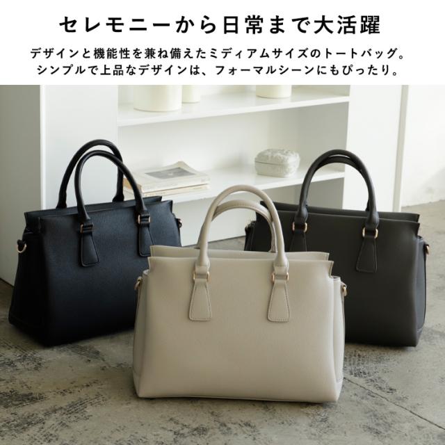 セレモニーから日常まで大活躍のミディアムトートバッグ。