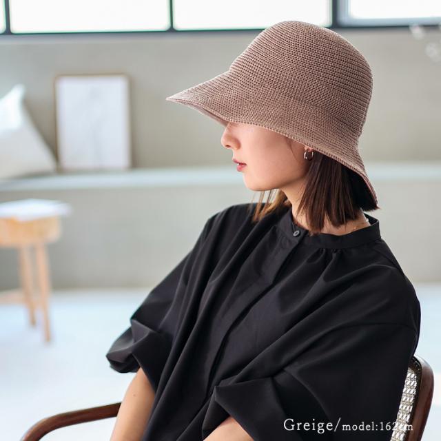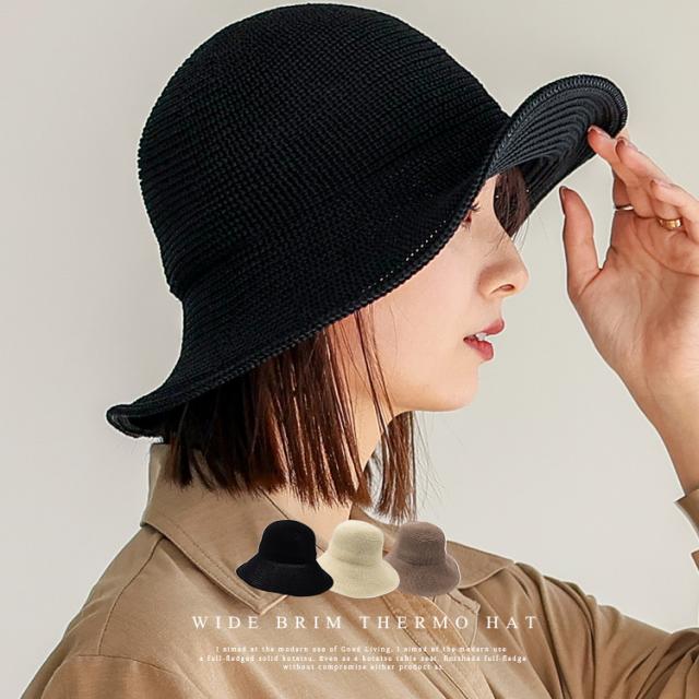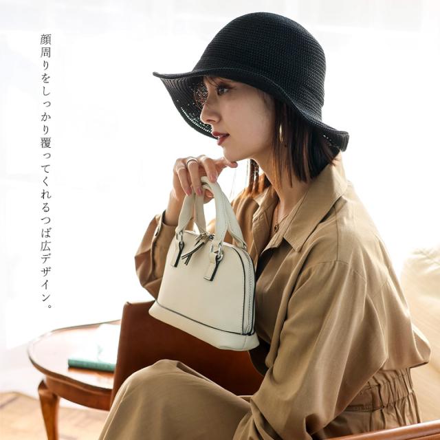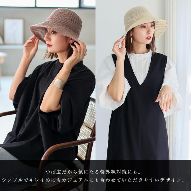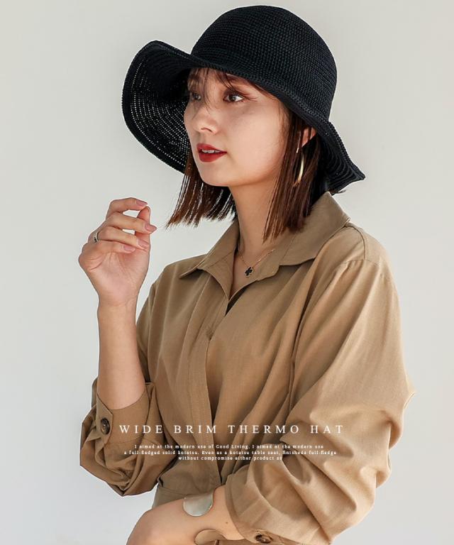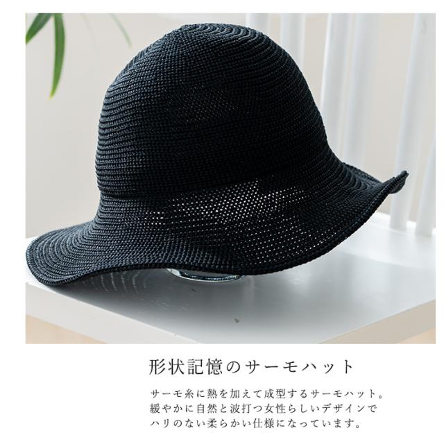 つば広ハット レディース 57.5cm チューリップハット 深め つば広帽子 サーモハット 透かし編み 波打つツバ uvカット 軽量 丸い サーモ素材 形状記憶 小顔効果 通気性 きれいめ ゆったり 大きめ smh-299s510【aroco/アロコ】 母の日 プレゼント
