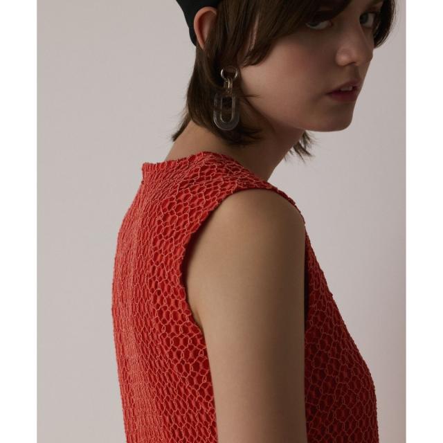 トレンドのコードレースメッシュ生地でお作りした、涼やかなノースリーブワンピース。 ハイウエストで少し絞りを入れて切り替えた事で、女性らしい華奢さを感じられる一枚に仕上げました。裾はギャザーを寄せて、歩いた時の揺らぎが美しい一枚に。特徴的な素材を活かしたシンプルなデザインに、大きめメッシュの軽やかな佇まいが魅力です。高級感があってカジュアル過ぎない、大人のメッシュアイテムをこの機会にぜひ。