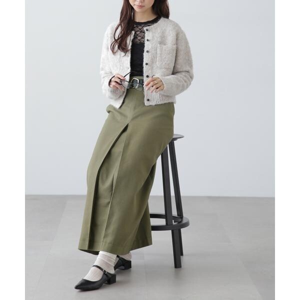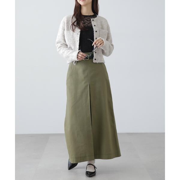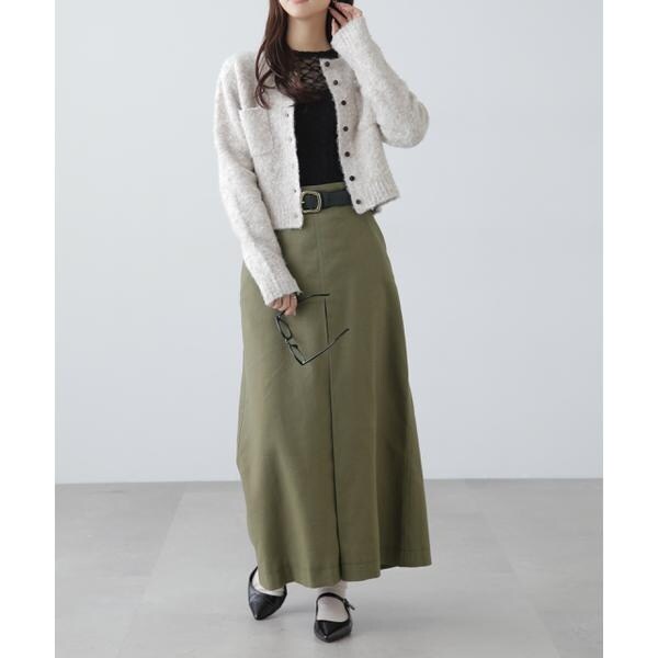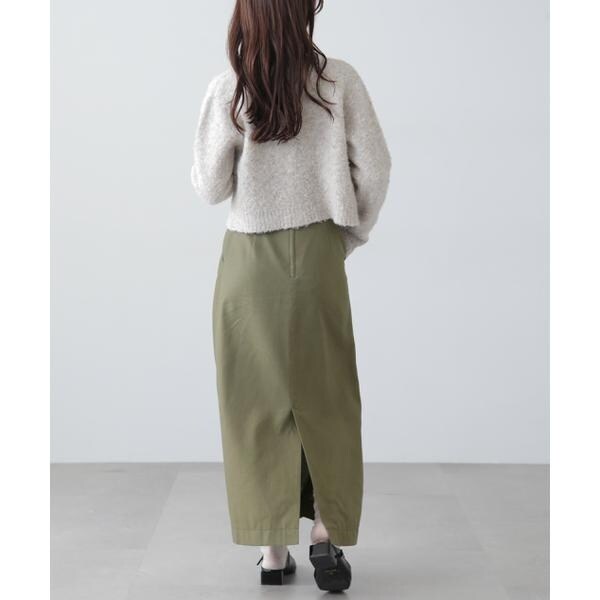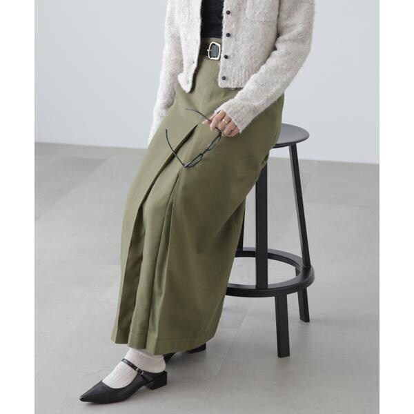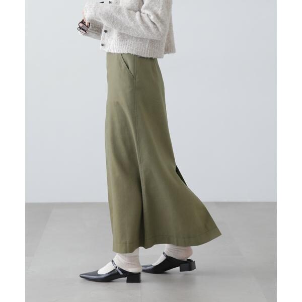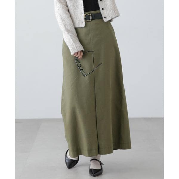 リネン混のナチュラルな風合いのツイル生地を使用した、カジュアルなマキシスカート。春先から盛夏に適した生地感です。フロントに大きくタックを入れることで、ナローシルエットの中に動きを加えて、美しいシルエットを叶えてくれるデザイン。ステッチワークを効かせているのもポイントです。ヘルシーに、フラットサンダルにTシャツスタイルがおススメです。※こちらの商品はXSサイズの展開がございます。◆サイズ目安◆XSサイズ→身長150cm−152cm ウエスト57cm−59cm※モデルの着用画像の場合、光の当たり具合により、実際の色味と異なって見えることがございます。色味は、商品単体の画像をご参照ください。