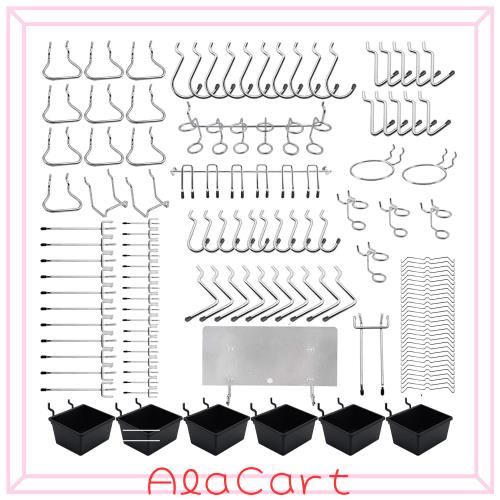 【幅広い用途】有孔ボードフックは様々な種類がありますので、ガレージ、作業台、工房、工具棚、地下室、道具屋、小売店に、キッチン、庭、デパート、学校、工場、または倉庫、またはストレージの整理、壁面の収納、飾りに役立ち、収納しやすくなります。釘板フックセットは様々なハードウェアツール、家庭用清掃ツール、絵画ツール、鍵、各種小物などをご利用いただけます
