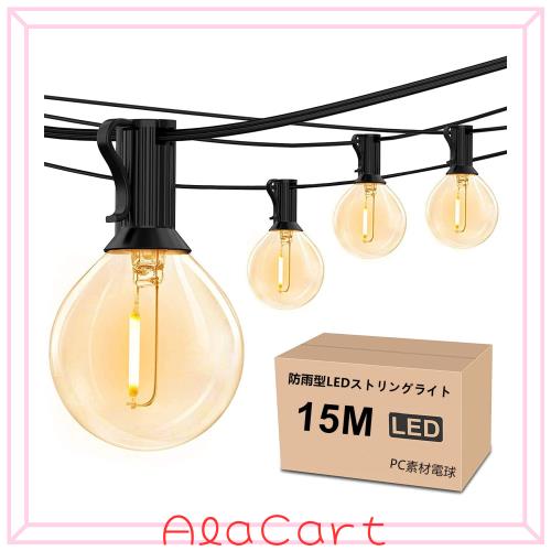 防雨型LEDストリングライト 15M 25個LED電球付き E12口金 2700K電球色 PC素材 破損しにくい 連結可能 LEDイルミネーションライト屋内/屋