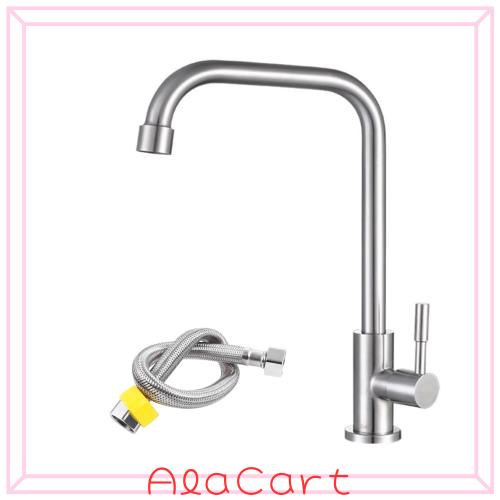 SUS304ステンレス キッチン蛇口 キッチン用水栓 シンク蛇口 手洗いボウル用水道 シングルレバーワンホール単水栓 360度回転節水 50cm取り
