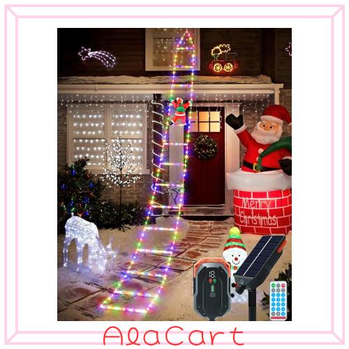 【USB充電可能】 ソーラー イルミネーション ライト LED クリスマス イルミネーション ライト 梯子 サンタクロース 飾り ライト ソーラー