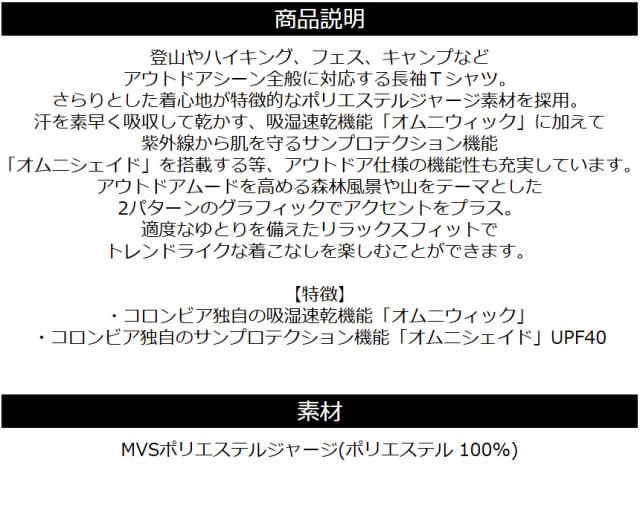columbia コロンビア アーバンハイクグラフィックロングスリーブTシャツ メンズ カットソー UV対策 アウトドア ブランド 長袖 PM0571 【J1-1412】 送料無料 通販A15