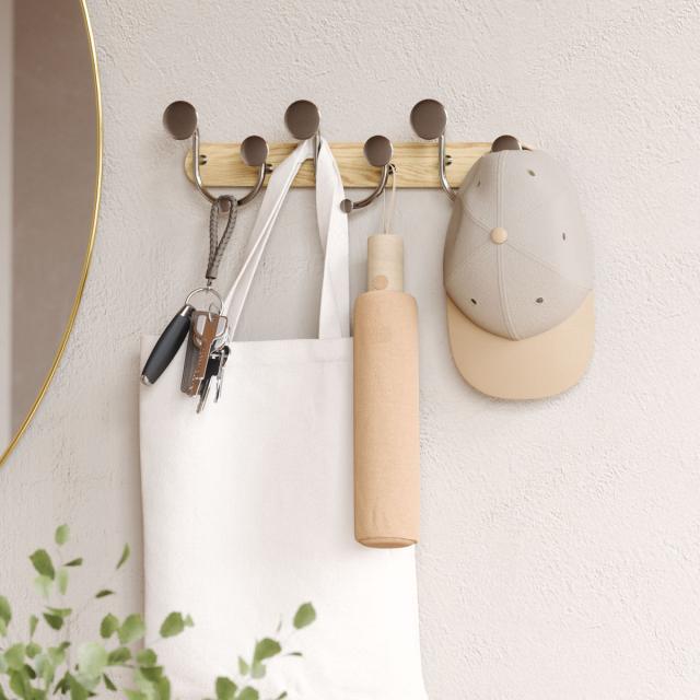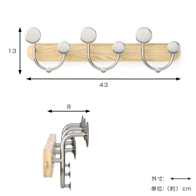フック 壁 メロディ 9個 幅43×奥行8×高さ13cm ( Umbra アンブラ 壁掛け デザインフック 壁掛けフック ウォールフック 壁面収納 木製 おしゃれ コートハンガー 洋服掛け ハンガーフック 玄関 収納 カバン 帽子 )